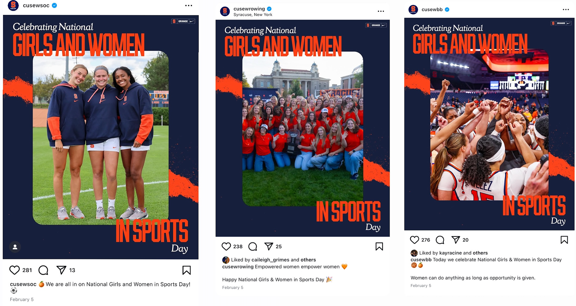 For National Girls and Women in Sports Day, I was tasked to create 4 different templates for the women's teams to use for a post. Below are the posts from the teams Instagram pages. Across accounts, these posts generated engagement consistent with a 30 day average of each.